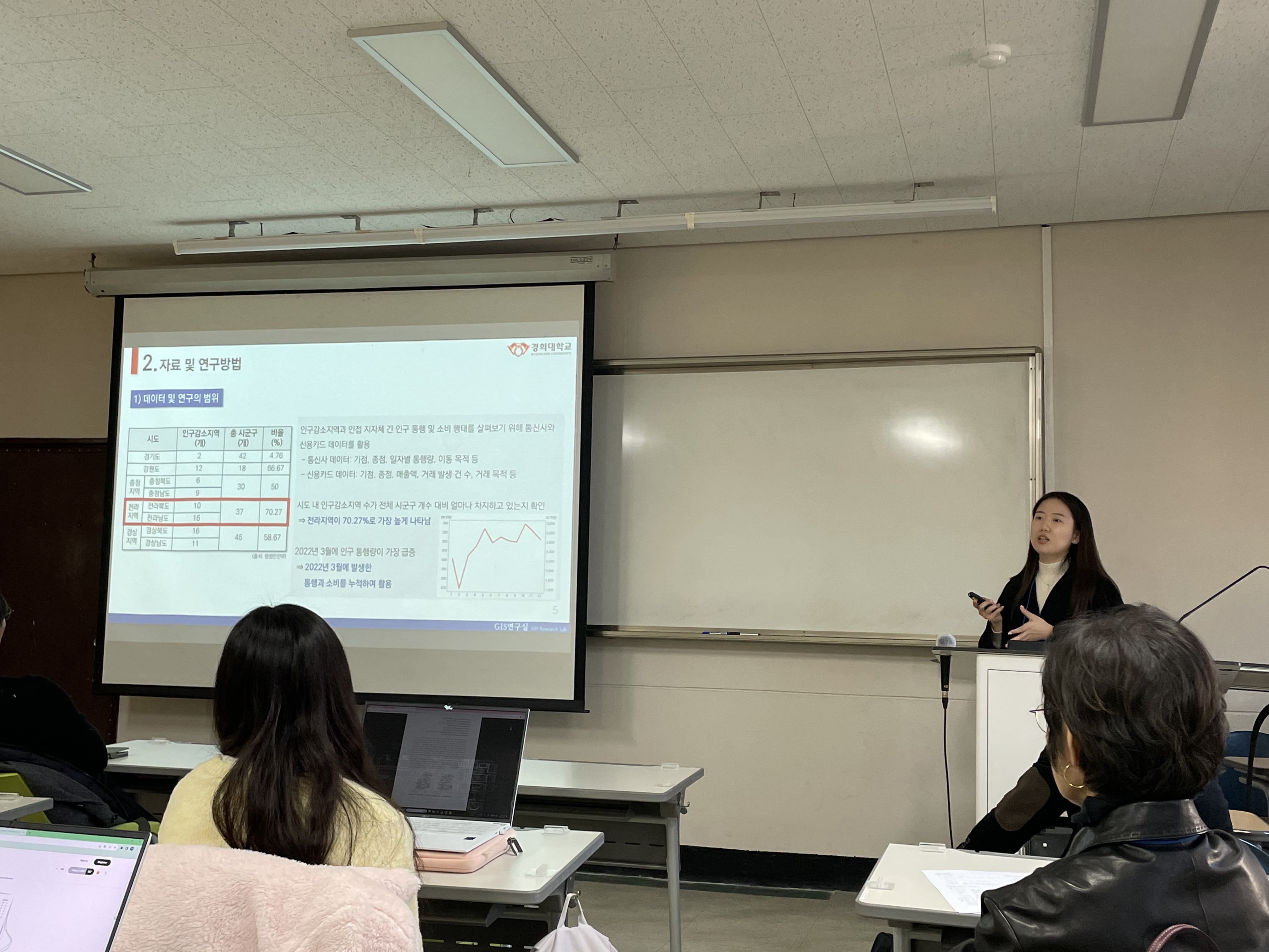 Presented research on "Spatial Associations of Intercity Flows between Depopulation Regions" at the Korean Geographical Society Conference.